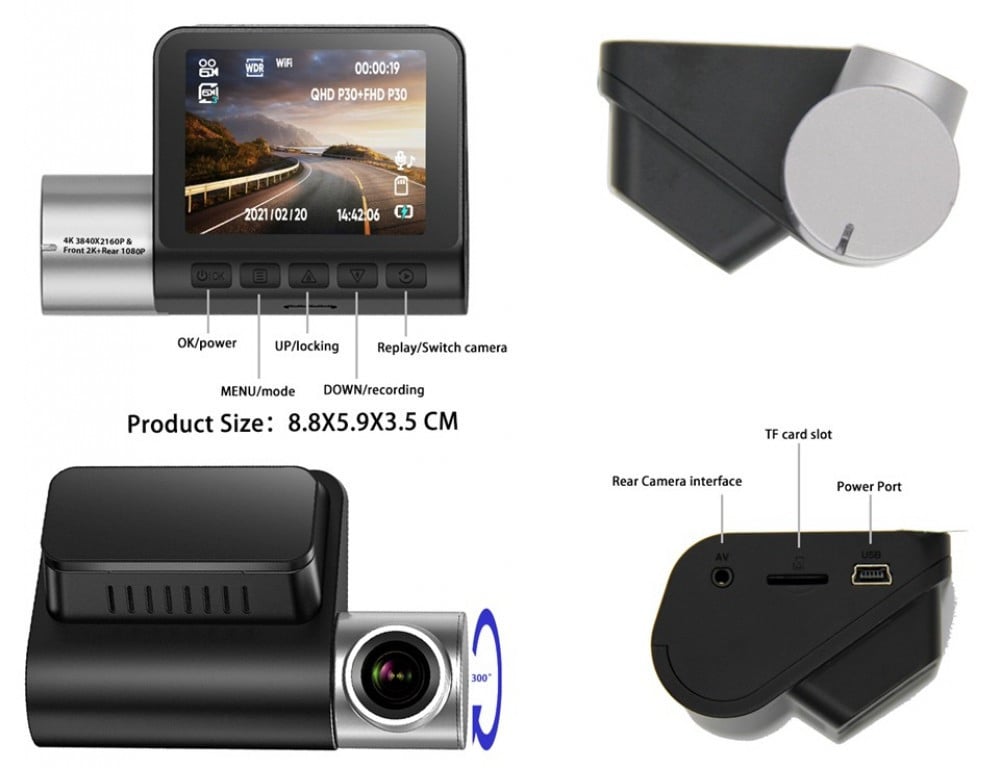 - اسم المنتج: كاميرا داش كام 2k تسجيل - Dash Camera 2k